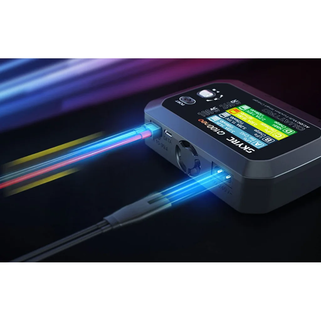 A SkyRC Q100neo töltő egy kompakt, de rendkívül funkcionális eszköz, amelyet RC modellek, drónok és más, modellakkumulátorokat használó eszközök felhasználói számára terveztek. Négy független töltőportjával lehetővé teszi több akkumulátor egyidejű töltését, ami jelentősen csökkenti a berendezés üzemkész állapotba hozatalához szükséges időt. Az eszköz számos típusú akkumulátorral működik, és pontos töltési paraméterek vezérlését kínálja, biztosítva a biztonságos és hatékony használatot.