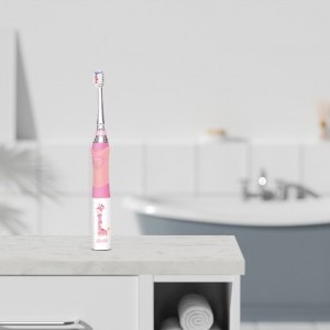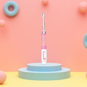 The toothbrush attracts attention with its charming design, which will certainly appeal to the youngest users. Thanks to its ergonomic design it is comfortable to use and fits little hands perfectly. It is also distinguished by colourful LED backlighting. The device was made of ABS plastic, which is safe for health and free from harmful, chemical substances. It is IPX7 waterproof, so you can freely use it in the bath or shower.