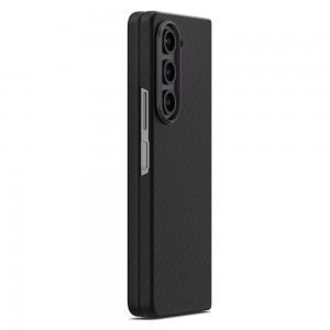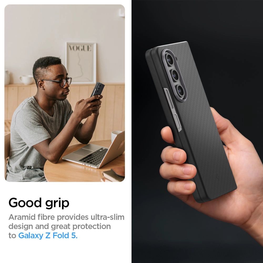 A Spigen AirSkin Pro egy olyan tok, amely minimalista dizájnjával és vékony kialakításával tűnik ki, miközben magas fokú védelmet nyújt a mindennapi karcolások ellen. Tökéletesen kielégíti az egyszerűséget előnyben részesítő, ugyanakkor a telefon eredeti megjelenését megőrző emberek igényeit. A tok legfőbb jellemzője a kiváló minőségű polikarbonátból készült szerkezet, amelyet aramid szál borít, így nemcsak könnyű, hanem rendkívüli tartósságot is biztosít. Az extra réteg tisztán tartja a tokot és ellenáll az ujjlenyomatoknak. Az egyik legfontosabb előnye a vékony kialakítás, mindössze 1,0 mm vastag. Ennek köszönhetően a telefon kézre álló és kompakt marad, felesleges teher nélkül. A zsanér védelmére tervezett tok megóvja azt a véletlen sérülésektől és karcolásoktól, hosszabb ideig megőrizve készülékének szép megjelenését. Egy másik jelentős jellemzője a kiváló fogás. A Spigen AirSkin Pro tok tökéletesen illeszkedik a telefonhoz, biztosítva a szilárd fogást és minimalizálva annak esélyét, hogy a készülék véletlenül kicsússzon a kezéből. Az okostelefon még intenzív használat során is biztosan a kezében marad. A pontosan elkészített kivágások gyors hozzáférést biztosítanak az összes porthoz, gombhoz és a telefon funkcióihoz. A tok kompatibilis a vezeték nélküli töltéssel is. Így anélkül tudja újra feltölteni telefonját, hogy le kellene venni a tokot.