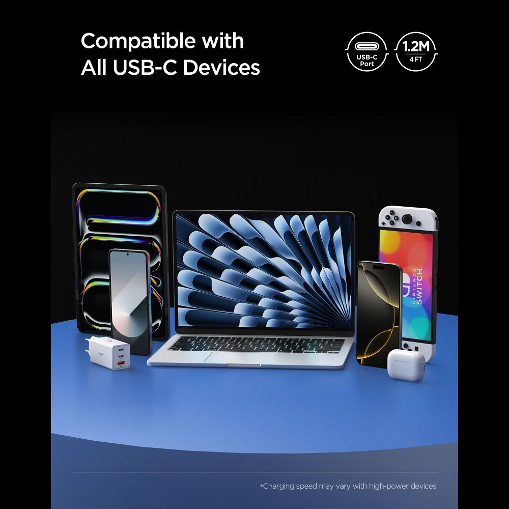 A Spigen Essential EB24012CC kábelt úgy tervezték, hogy minden USB-C porttal rendelkező eszközzel kompatibilis legyen. Használja laptopjával, okostelefonjával, tabletjével, vagy akár gaming konzoljával (pl. Nintendo Switch) és egyéb USB-C tartozékaival. A 120 cm-es (1.2m / 4 ft) hosszúság optimális rugalmasságot biztosít otthon, az irodában vagy utazás közben.