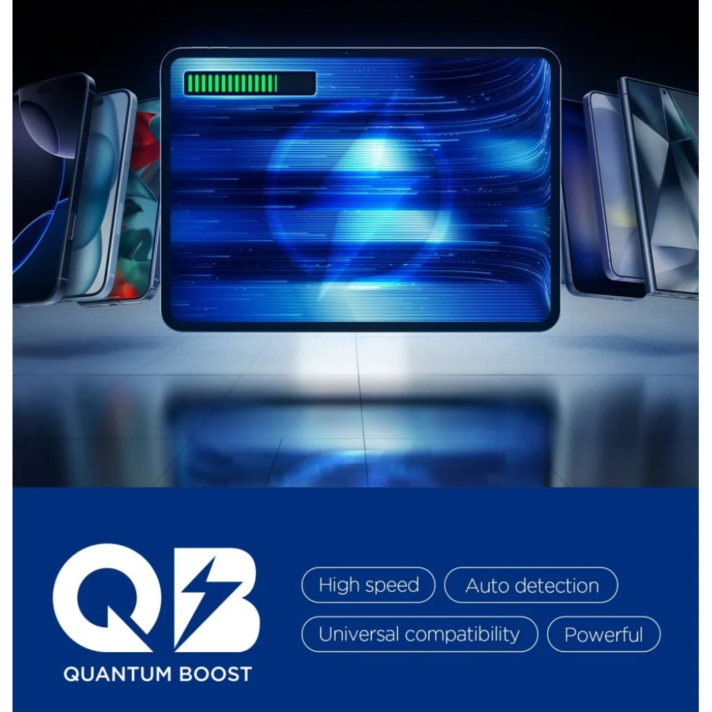 A beépített Quantum Boost technológia automatikusan felismeri és az adott eszközhöz igazítja a töltési teljesítményt, maximalizálva annak hatékonyságát és sebességét. Ez a technológia a következőket biztosítja: