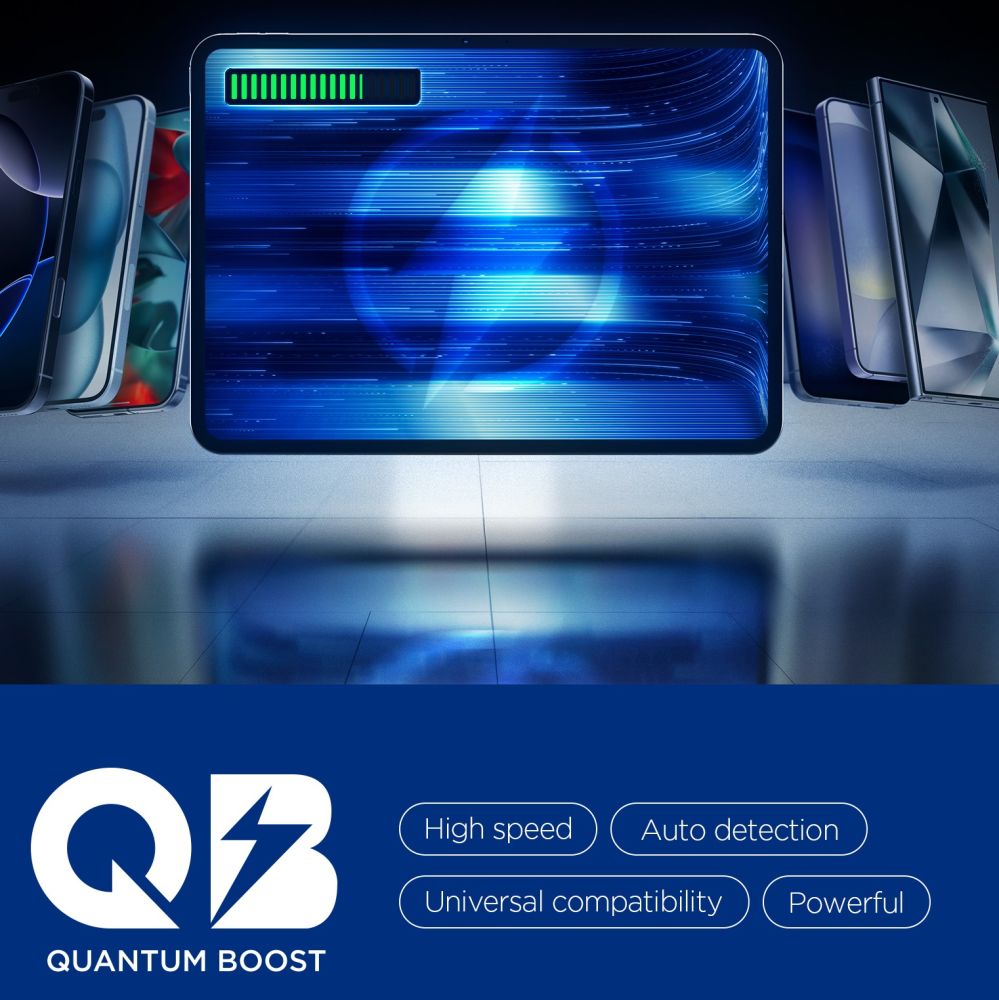 • Quantum Boost technológia: Intelligensen felismeri a csatlakoztatott eszközöket és automatikusan az optimális teljesítményt állítja be mindegyikhez, biztosítva a nagy sebességet, automatikus felismerést és univerzális kompatibilitást.