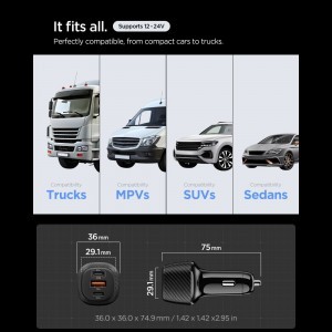• Univerzális jármű kompatibilitás: Tökéletesen illeszkedik a legtöbb szivargyújtó aljzatba, és kompatibilis minden típusú járművel (teherautók, furgonok, SUV-ok, szedánok), melyek 12-24V-os rendszert használnak.