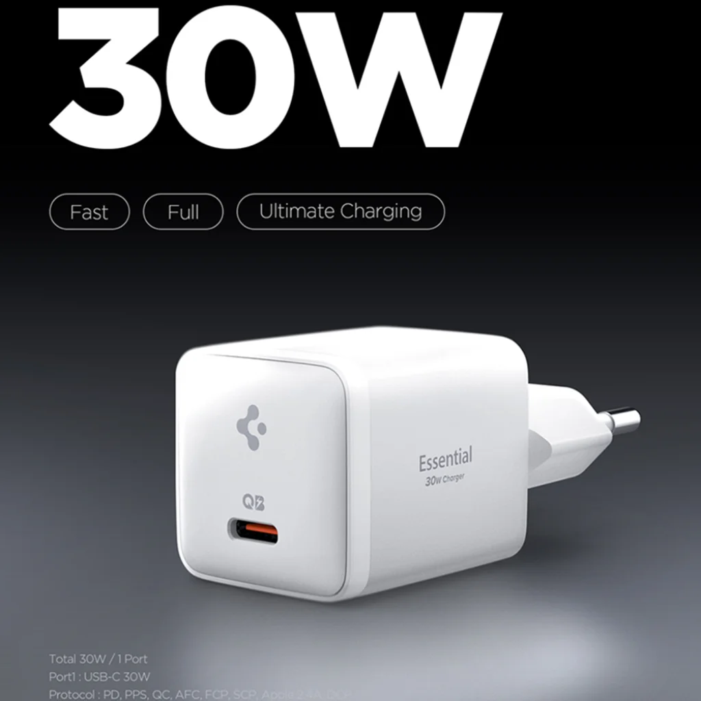 Spigen - Fali Töltő Essential EE301EU (ACH09492) - Type-C, Gyors töltés, Quantum Boost, 30W - Fehér