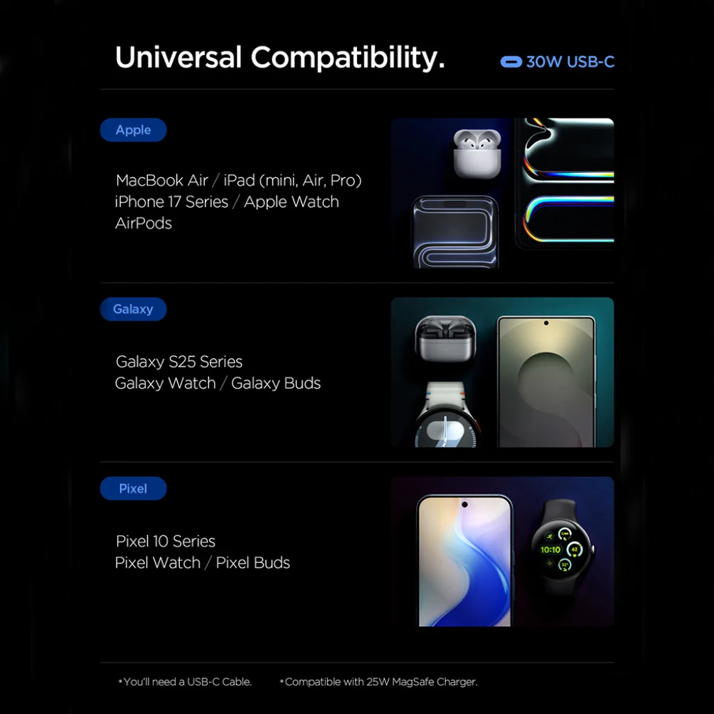 -A töltő akár 30W teljesítményt is kínál, így a telefonod gyorsan teljesen feltöltődik.