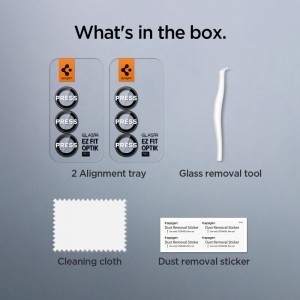 A Spigen által gyártott lencsevédők forradalmi "Ez Fit" telepítési módszerrel rendelkeznek - ha eddig féltél ettől a folyamattól edzett üveg használatakor, akkor a problémáid most megoldódtak! A védőborításokat tökéletesen méretre vágott szerelési keret biztosítja, amely segít a lencsék pontos pozícionálásában. A gyártó annyira leegyszerűsítette a telepítést, hogy teljesen intuitív minden felhasználó számára.