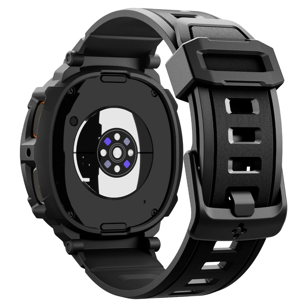 A Spigen Rugged Armor "Pro" egy prémium, robusztus kialakítású óraszíj és védőtok egyben, kifejezetten a Samsung Galaxy Watch 8 (40 mm) modellhez tervezve. Tökéletes választás azok számára, akik aktív életmódot élnek, és maximális védelmet szeretnének órájuknak anélkül, hogy feladnák a stílust és a kényelmet.