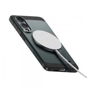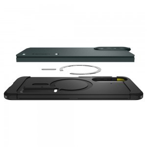 A Spigen márka Tough Armor sorozatú tokja az elődje továbbfejlesztett változata. A tok mágneses gyűrűvel van felszerelve, amely kompatibilis a MagSafe rögzítőrendszerrel és vezeték nélküli töltéssel, lehetővé téve az Apple technológia gyors és egyszerű használatát. Kétrészes felépítése kopásálló termoplasztikus anyagból és megerősítő polikarbonát keretből készült. A tok belsejében technológiai habbetét található, amely további védőréteget biztosít ütésektől vagy leejtésektől. A tok tökéletesen illeszkedik, és nem korlátozza a vezeték nélküli töltési lehetőséget. Az emelt keretforma a kamera és a képernyő körül megvédi azt a karcolásoktól, megemelve a telefont a sík felület fölé. Védelmet nyújt a gomboknál és kivágásokat tartalmaz a portoknál. A Tough Armor tok 26 alkalommal volt leesési tesztnek alávetve 1,2 m magasságból, ezáltal megkapta az amerikai katonai tanúsítványt, a MIL-STD 810G-516.6-ot.