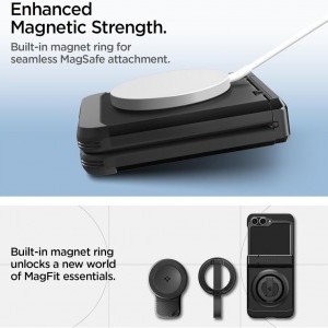 A Spigen Tough Armor MagSafe rendkívül szilárd tok, amelyet maximális védelemre és az Apple MagSafe rendszerrel való teljes kompatibilitásra terveztek. Integrált mágneses gyűrűjének köszönhetően gyors és biztonságos vezeték nélküli töltést, valamint a MagSafe kiegészítők használatát teszi lehetővé, anélkül, hogy a tokot le kellene venni.