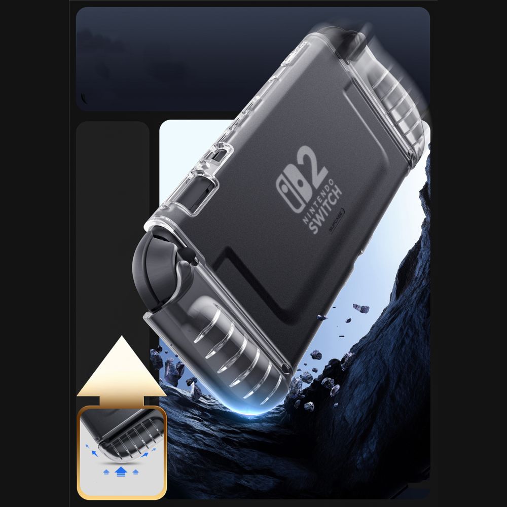 A hosszú játékmenetek sosem voltak még ilyen kényelmesek! Az ergonomikus kialakítású fogantyúk tökéletesen illeszkednek a kézbe, minimalizálva a fáradtságot, még órákig tartó játék után is. A deresen áttetsző, átlátszó anyag nemcsak modern megjelenést kölcsönöz a konzolnak, hanem lehetővé teszi a Nintendo Switch 2 eredeti, stílusos dizájnjának megőrzését is, miközben védelmet nyújt a karcolások és a mindennapi kopás ellen.
