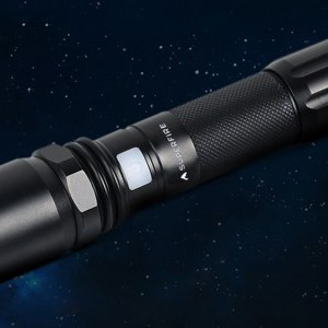 A zseblámpa 7 wattos teljesítménnyel 550 lumen fényerőt biztosít, erős fényt nyújt és hosszú élettartammal rendelkezik, így nem kell aggódnod a diódák gyakori cseréjén. A zseblámpának 5 fény üzemmódja van. 3 üzemmód a fényerő szabályozására szolgál (erős, közepes, gyenge), a másik kettő pedig a stroboszkópos fény vagy SOS bekapcsolására szolgál. Az üzemmódok között a zseblámpa kapcsolójával lehet váltani.