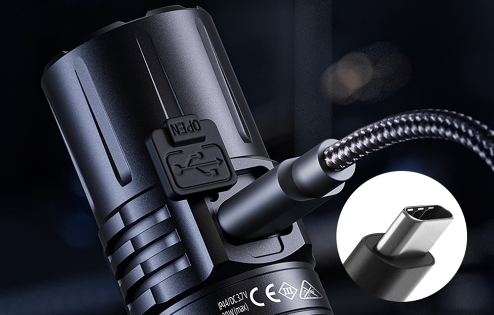 A Superfire A20 zseblámpa többféle akkumulátortípussal kompatibilis, beleértve a 21700, 18650 és három AAA elemet, nagy rugalmasságot biztosítva a felhasználónak az áramforrás megválasztásában. A beépített USB-C töltőport gyors és hatékony töltést tesz lehetővé különböző eszközökkel, például számítógépekkel, powerbankokkal és fali töltőkkel. A LED töltésjelző jelzi az akkumulátor állapotát - a piros fény azt jelenti, hogy az akkumulátor töltődik, míg a kék fény a teljes feltöltést jelenti.