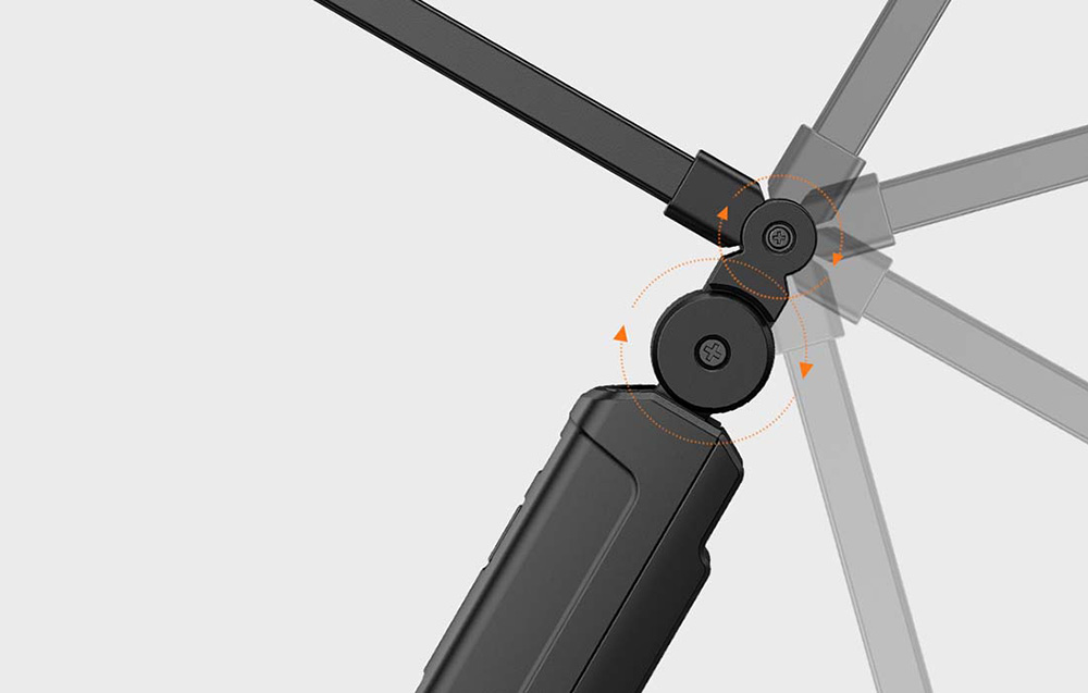 A zseblámpát 360°-ban állíthatod, lehetővé téve, hogy a fény szögét igényeidhez igazítsd. Az eszköz intelligens beállítás-memória funkcióval is rendelkezik. Könnyedén beállíthatod a lámpa fényerejét, csupán tartsd lenyomva a bekapcsológombot. Választhatsz fehér/piros első vagy oldalsó fényt.