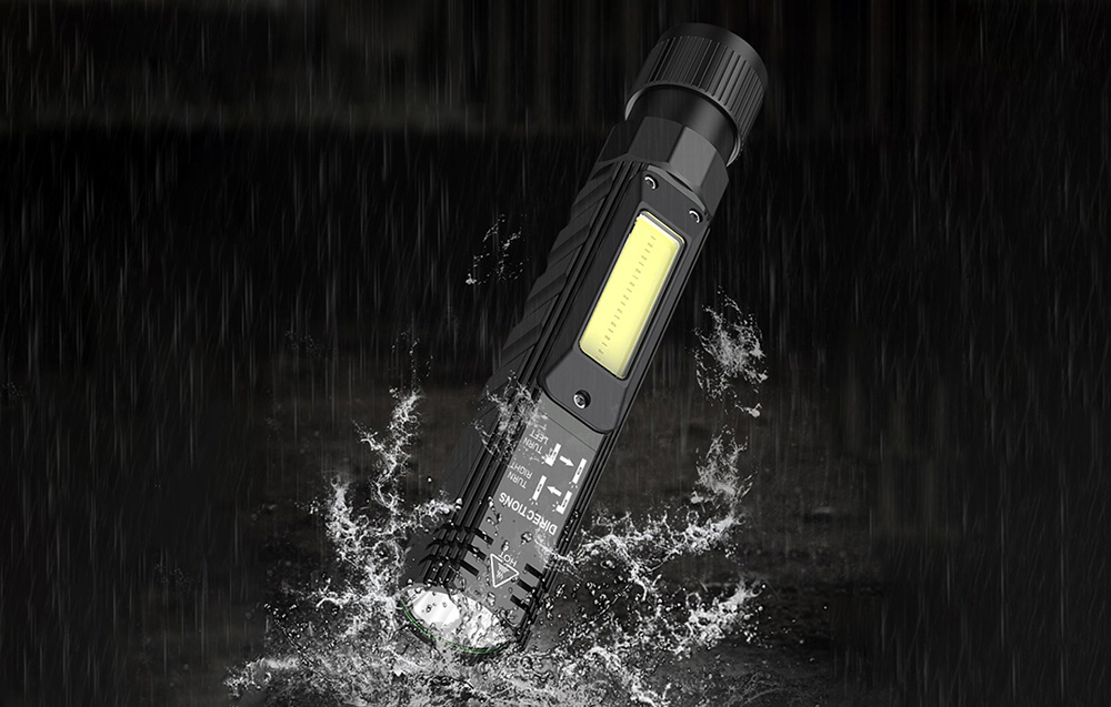 A zseblámpa fő világítófeje 90°-ban állítható, ami jelentősen növeli a funkcionalitását. Könnyedén beállíthatja a világítási szöget a talapathoz képest, így minden helyzetben optimális megvilágítást biztosíthat.