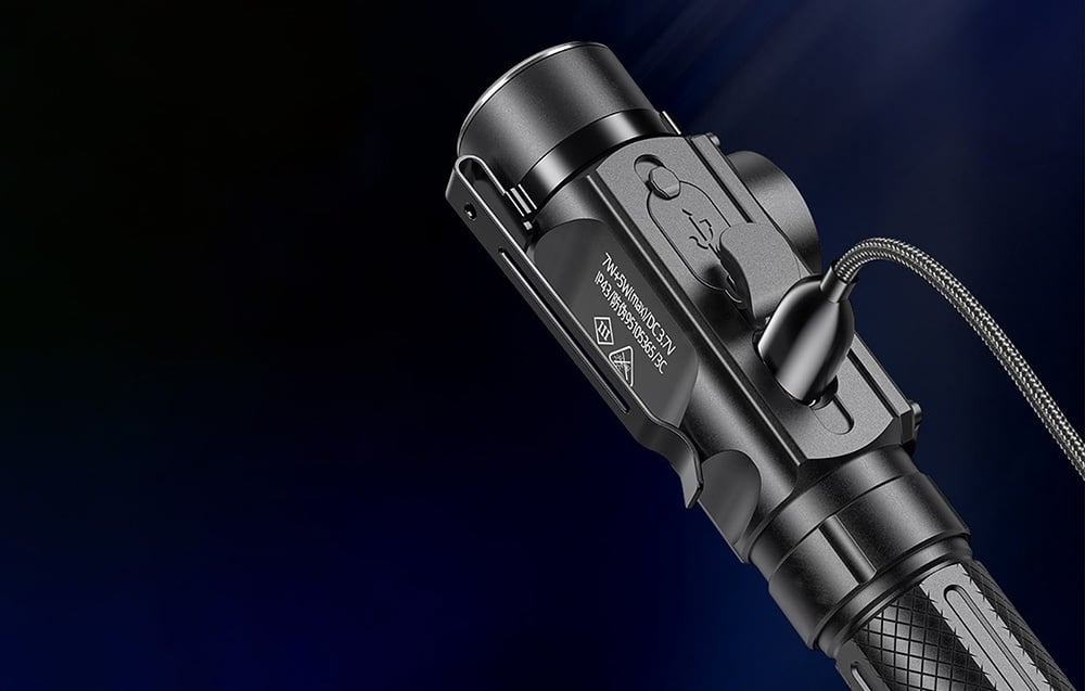 The Superfire J05 flashlight uses a USB-C charging port, ensuring compatibility with most commercially available charging cables. A built-in indicator allows you to monitor the battery level, and LEDs indicate the charge level. A built-in overcharge and over-discharge protection system enhances the safety of use.
