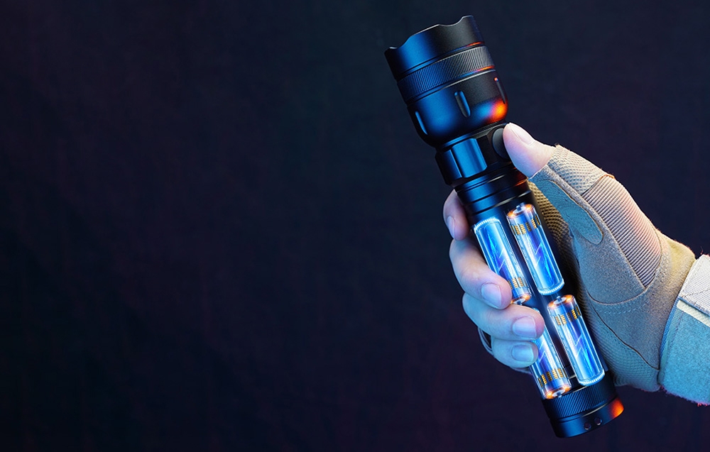 Hosszú üzemidő: A zseblámpa hat AA elemmel működik, biztosítva akár 4,7 órás folyamatos megvilágítást.