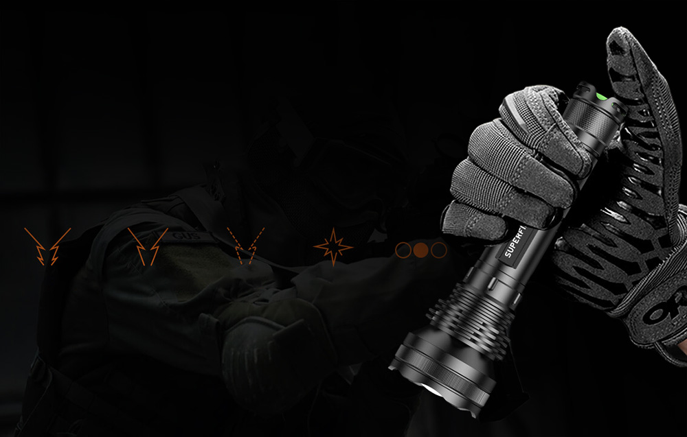 A Superfire L3-D zseblámpa 2700 lm fényerővel ragyog és stabil fényt biztosít 400 méteres hatótávolsággal. Az IP46-os vízállóságú és strapabíró anyagokból készült lámpa jól teljesít a szabadban, a 7400 mAh kapacitású akkumulátor és a hosszú üzemidő is előny. Az L3-D 5 működési módot kínál, és kényelmesen, egyszerűen használható.