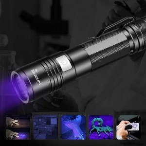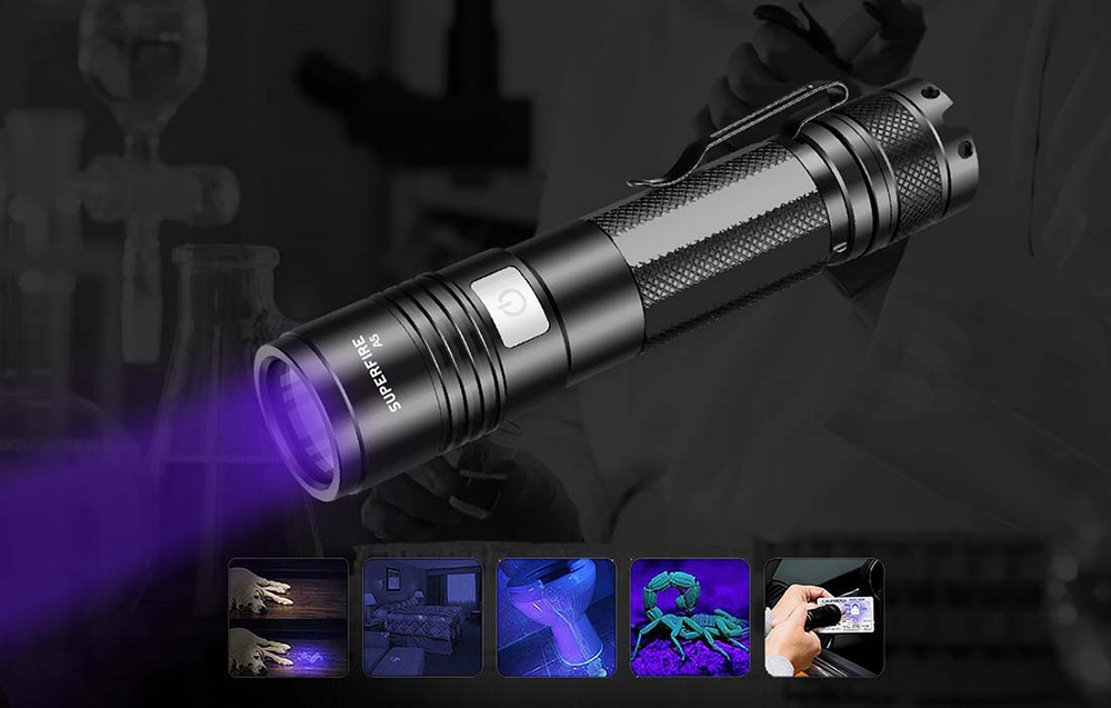 Praktikus: A Superfire zseblámpa egy mindennapi életben hasznos kiegészítő. Az eszköze 365NM hullámokat használ, amelyek segítségével megpillanthatod a szem számára láthatatlan foltokat, például a fürdőszobai nyomokat, állatok vizeletét, fluoreszkáló anyagokat és atkákat. Segítségével ellenőrizheted a bankjegyek vagy olyan okmányok eredetiségét, mint a jogosítvány vagy személyi igazolvány. Az UV zseblámpa fénye emellett gyorsítja a körömlakk és a műgyanta száradását.