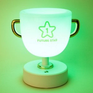 A SuperFire-rel minden gyermek sztárként érezheti magát. A Bajnokfény éjjeli lámpa eredeti dizájnt kínál, amely egy trófeára hasonlít, és praktikus kialakítása révén lehetővé teszi az iskolai kellékek kényelmes tárolását. Az mellékelt távirányítóval a fényt kényelmesen kezelhetjük, anélkül hogy fel kellene kelnünk a kényelmes ágyból. Van emellett lehetőség időzítő beállítására az automatikus kikapcsoláshoz.