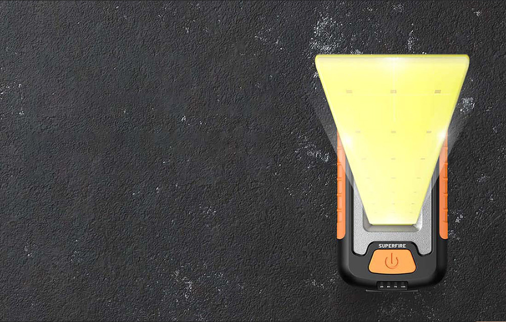 Flashlight from Superfire will work in almost every situation. Lightweight, compact - will not take up much space, and you can store it even in your pocket. COB panel illuminates a large area, has a long life and good heat dissipation. In addition, its clever design allows you to use it in various conditions. The battery level indicator will inform you when you need to renew the energy of the device. You can charge the flashlight with a smartphone, powerbank, etc. The accessory can also serve as a powerbank for your smartphone and other devices.