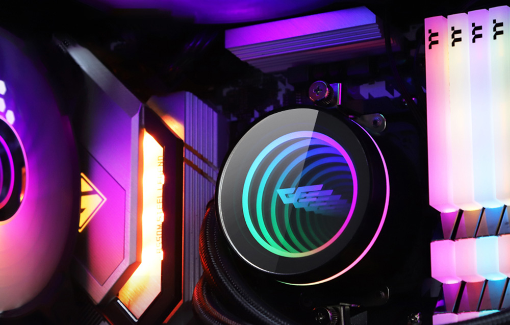 Világítsa meg játékmunkállomását millió színnel! A DX120 hűtőegység színes RGB világítással van felszerelve, amely szokatlan vizuális hatásokat biztosít. A vízblokk is színes LED világítással rendelkezik, és a fej 360°-os forgathatóságának köszönhetően a logót bármilyen szögből láthatja. Még lenyűgözőbb hatások érdekében kombinálja a hűtőegységet más RGB összetevőkkel, és hozzon létre egy egyedi játékbeállítást!