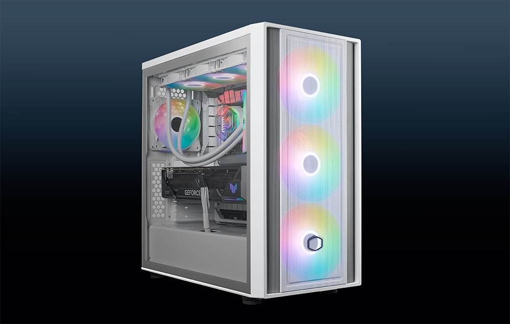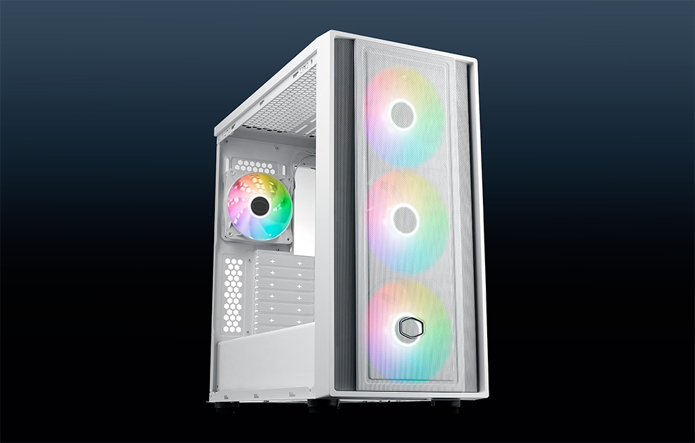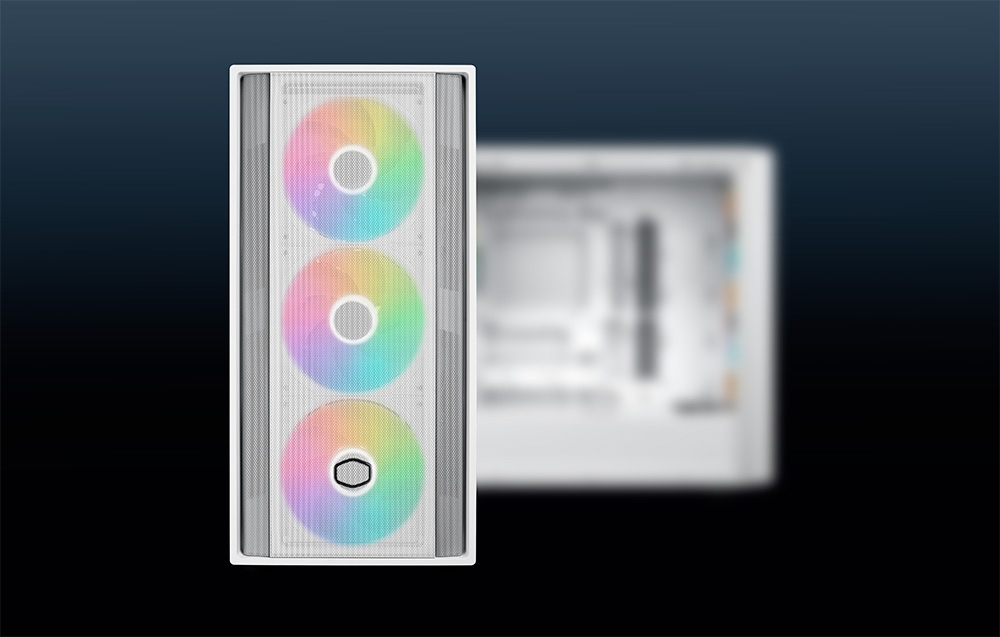 A MasterBox 600 előre telepítve három 140 mm-es SickleFlow ARGB PWM ventilátorral az elülső oldalon és egy 120 mm-es CF120 ARGB ventilátorral a hátsó oldalon. Mindegyik ARGB-kompatibilis és állítható sebességű a hatékony és csendes hűtés érdekében már a dobozból kivéve. A csomagban egy ARGB hubot is találsz a ventilátorokhoz.