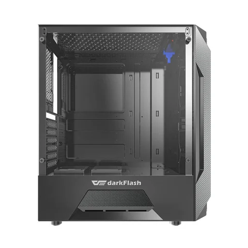 A Darkflash LEO számítógépház fekete színben, három ventilátorral rendelkezik, melyek a ház elején helyezhetők el. Emellett a hűtőrendszer lehetőséget biztosít további három ventilátor és egy felső helyzetű vízhűtés beszerelésére is a PCU-hoz. Mint a legtöbb modern ház, egy USB 3.0, két USB 2.0 és egy HD audio porttal rendelkezik. Továbbá áttetsző oldalpanelekkel van felszerelve, ami láthatóvá teszi a háttérvilágítással rendelkező komponenseket.