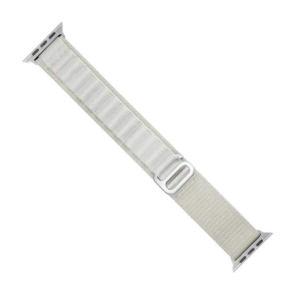 Szíj Alpine acél csattal Apple Watch 38/40/41 mm - ezüst Az Alpine szíj kényelmes és elegáns, tökéletes az Apple Watch-odhoz. A sportos karaktere jól illeszkedik a kültéri tevékenységeidhez. A termék tartós, minőségi anyagokból készült, minden részletre odafigyelve. A szíj különösen könnyen felhelyezhető az acél csatnak köszönhetően. Specifikáció:- Modell: Alpine