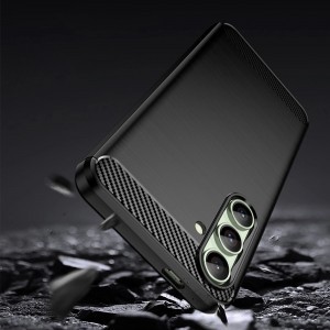 Szilikon tok Carbon Case Samsung Galaxy S24 FE - fekete tökéletes kombinációja a stílusnak, védelemnek és funkcionalitásnak, amely megfelel a legigényesebb felhasználók elvárásainak is. A megemelt szélek páratlan védelmet biztosítanak mind a képernyő, mind a kamera lencsék számára, minimalizálva a karcolódások és sérülések kockázatát. A precíz kivágások garantálják a könnyű hozzáférést az összes porthoz és funkcióhoz, míg az integrált gombok megvédik azokat a portól és szennyeződésektől. Az ideális illeszkedés miatt a tok remekül fekszik a telefonon, kiemelve annak karcsú sziluettjét. Kényelmes, csúszásmentes kialakítása biztos fogást és kényelmes használatot nyújt a mindennapokban.