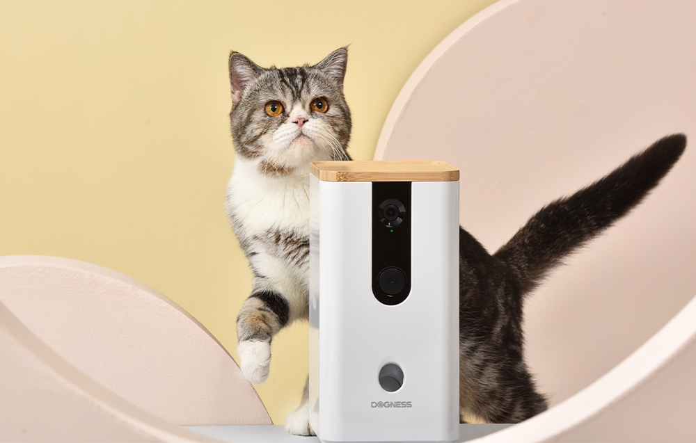 A T03 Dogness okos snack adagoló kamerával lehetővé teszi, hogy távolról irányítsd és kapcsolatba lépj kisállatoddal. Az ingyenes Dogness alkalmazással nézheted, hallhatod és beszélhetsz kedvencedhez, valamint bármikor jutalmazhatod őt snackkel, függetlenül attól, hol vagy. Az eszköz HD kamerával van felszerelve, amely éjszakai látással rendelkezik, lehetővé téve kisállatod mozgásának követését akár a sötétben is.