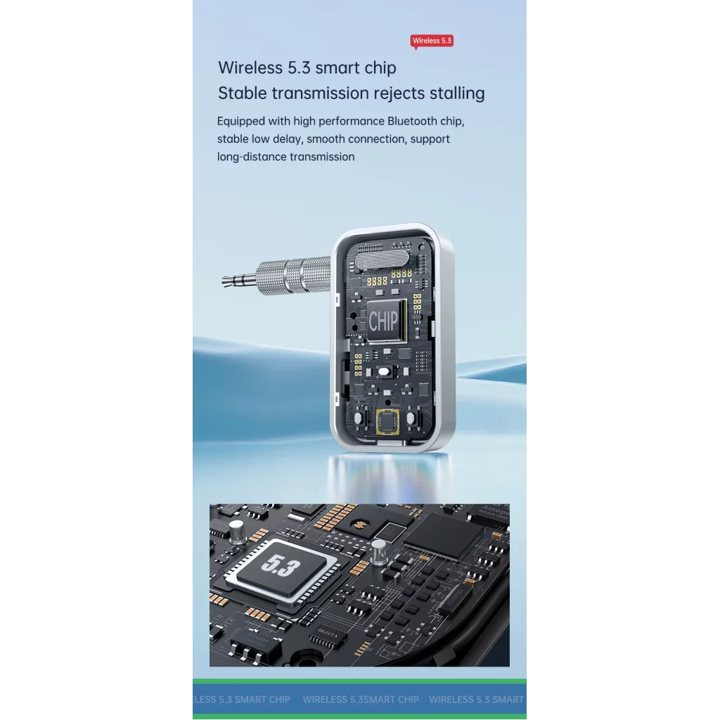 A T67 Bluetooth 5.3 hordozható AUX audió vevő és adó a tökéletes 2 az 1-ben megoldás, amellyel bármilyen audioeszközt vezeték nélkülivé tehet. Legyen szó régi hifi rendszerről, autórádióról vagy TV-ről, ez a kompakt eszköz modern Bluetooth képességekkel ruházza fel őket, biztosítva a stabil, késleltetésmentes hangátvitelt. Élvezze a HD minőségű zenét és a kihangosított hívásokat, vagy nézzen filmeket anélkül, hogy bárkit is zavarna!