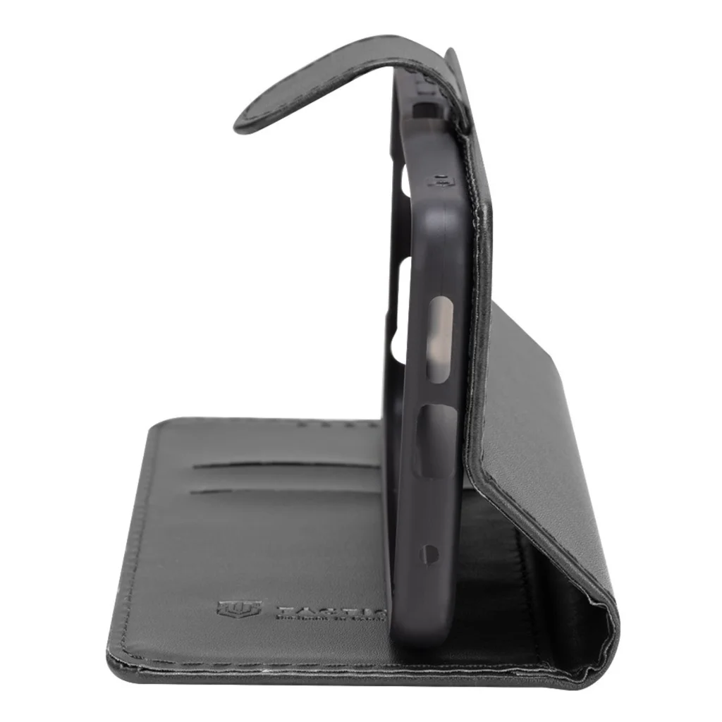 Az oldalról nyitható Tactical Field Notes tok stílusos, bőrhatású kialakítással és mágneses csattal záródik. A tok precízen készült, így minden vezérlőgomb és csatlakozó szabadon hozzáférhető. A belső, szilárd műanyagból készült telefontartó kivágással rendelkezik a kamera számára. A kijelzőt védő fedél praktikus állványként is szolgál, például filmnézéshez útközben. A tok varrása precíz, tapintása pedig nagyon kellemes. Természetesen található benne egy kivágás a hangszórónál, így a fedél zárva tartása közben is lehet beszélgetni.