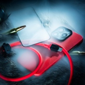 Ez a csatára kész Combo tartalmaz egy Aramid tokot, egy szilikon kábelt és egy üvegfóliát.