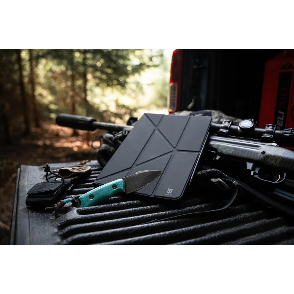 A Tactical Stealth Bomber elülső borítója egyesíti a Y alakú és a hárompaneles hajtogatott állványrendszert, amely a táblagépedet pillanatok alatt taktikai vezérlőközponttá alakítja.
