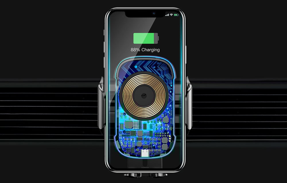 A beépített infravörös érzékelő automatikusan kinyitja a pofákat, amikor a telefon közeledik, így gyors és kényelmes behelyezést tesz lehetővé. A mechanizmus néhány másodperc alatt lezárul, biztosítva a telefon biztonságos tartását és az azonnali töltést.