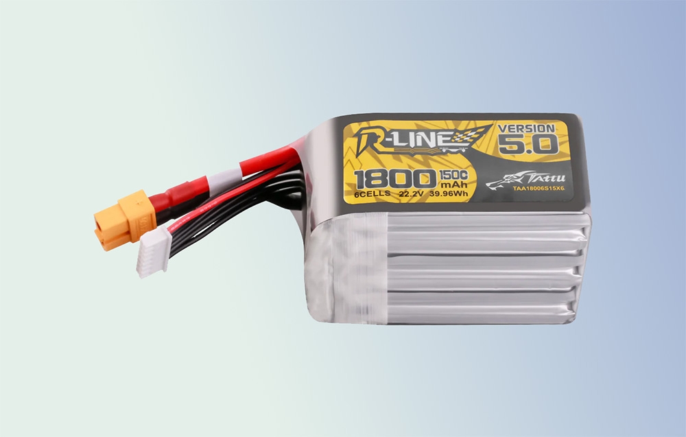 A Lipo Tattu R-Line 5.0 verzió 1800mAh 22.2V 150C 6S akkumulátor XT60 csatlakozóval kiváló választás a profi FPV versenyzők számára, akik megbízható energiát keresnek FPV modelljeikhez. Egyedülálló gyártási technológiájának és fejlett anyagainak köszönhetően kiemelkedő teljesítményt, nagy kapacitást és kivételes teljesítményt nyújt, ami a legnehezebb körülmények között is teljesít.