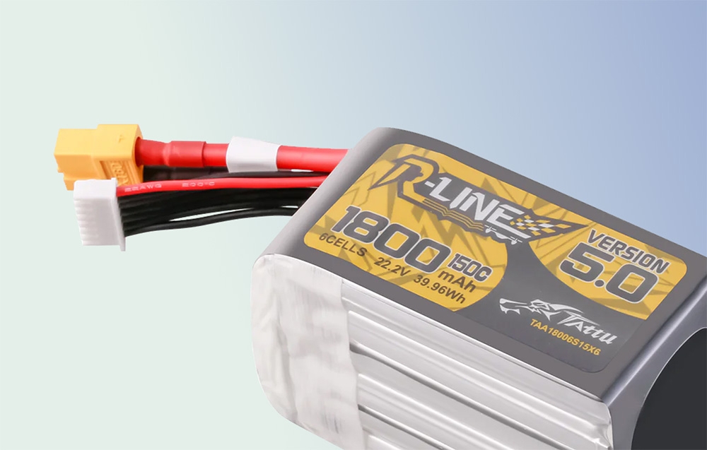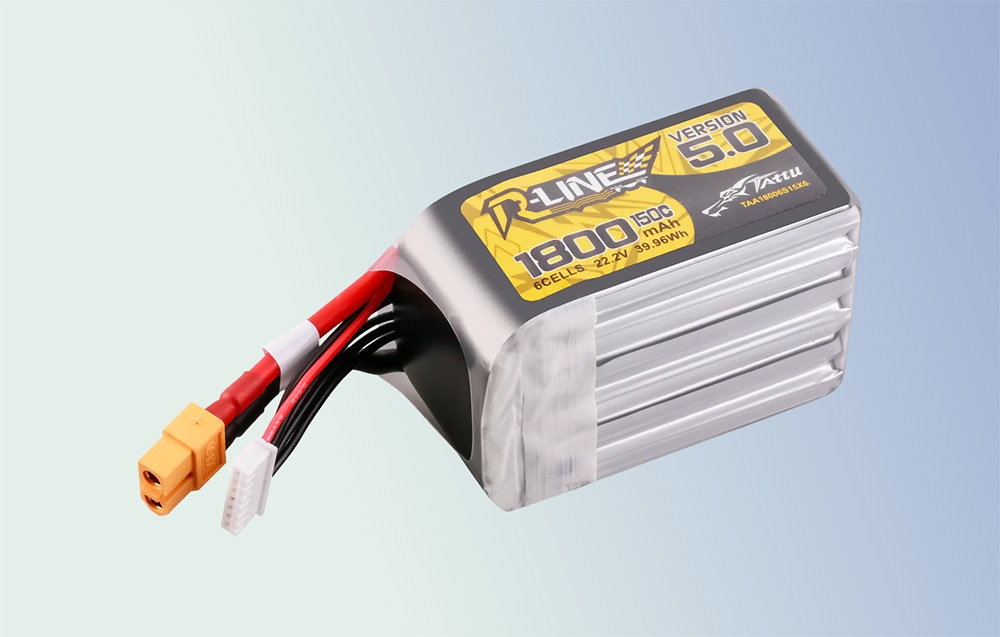 Nagy teljesítményű berendezés minden profi számára. A Tattu R-Line kivételes kapacitás/méret aránnyal rendelkezik. Kapacitása 1800 mAh, kompakt mérete (77 x 38 x 53 mm) és könnyű súlya (288 g) miatt ideális a 100 és 180 közötti méretű FPV multirotorokhoz, amelyeknek páratlan teljesítményt és hosszú repülési időt biztosít.