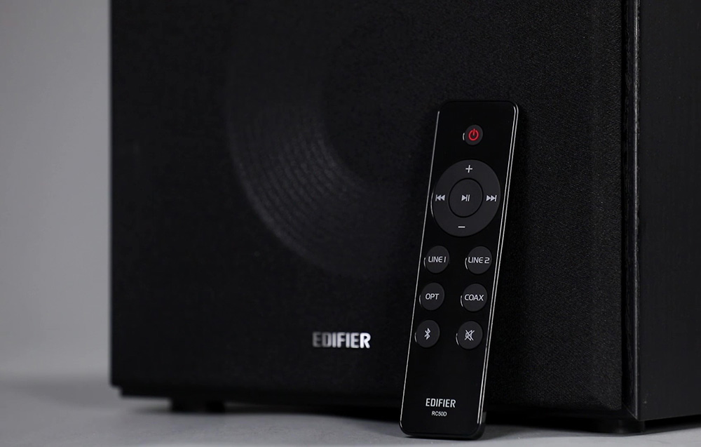 A távirányító lehetővé teszi a hangszórórendszer legfontosabb funkcióinak kényelmes vezérlését. Nem számít, hol tartózkodik – csak néhány mozdulat, hogy az Edifier R2850DB működését az igényeihez igazítsa. Kényelmesen állíthatja a hangerőt, kihagyhatja a dalokat, vagy megváltoztathatja a hangforrást. A távirányító CR2032 elemmel működik.