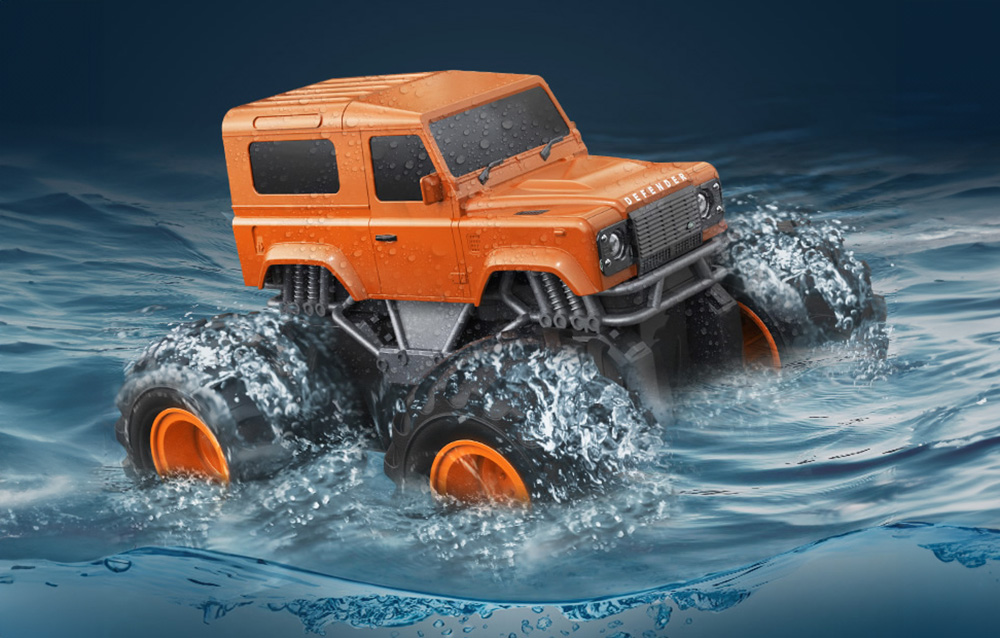 Egy kétéltű jármű, amely mindent megtehet. Korlátlan kalandokra tervezve, a Land Rover Double Eagle minden terepet képes meghódítani, bátran útnak indul a vizes területek felfedezésére is. Egyedi vízálló kialakításának köszönhetően az RC jármű készen áll bármilyen kihívásra.