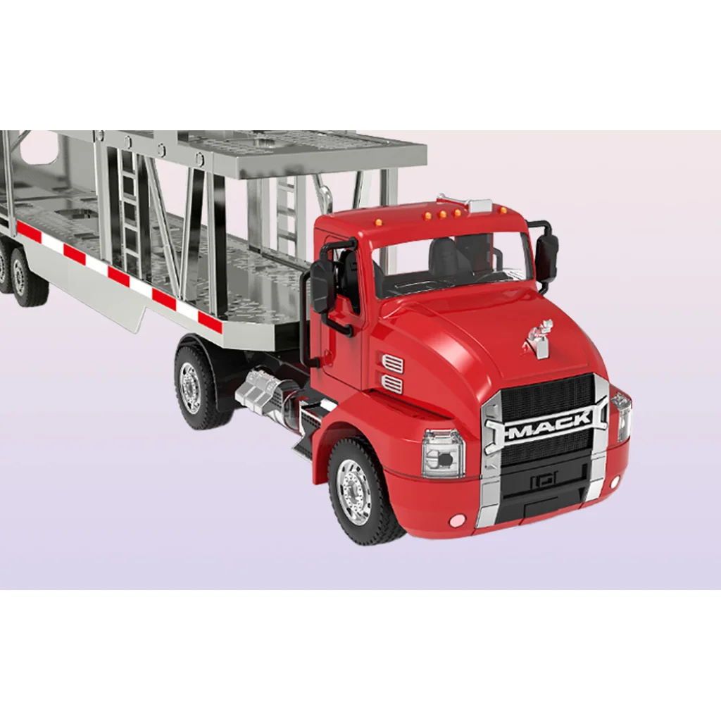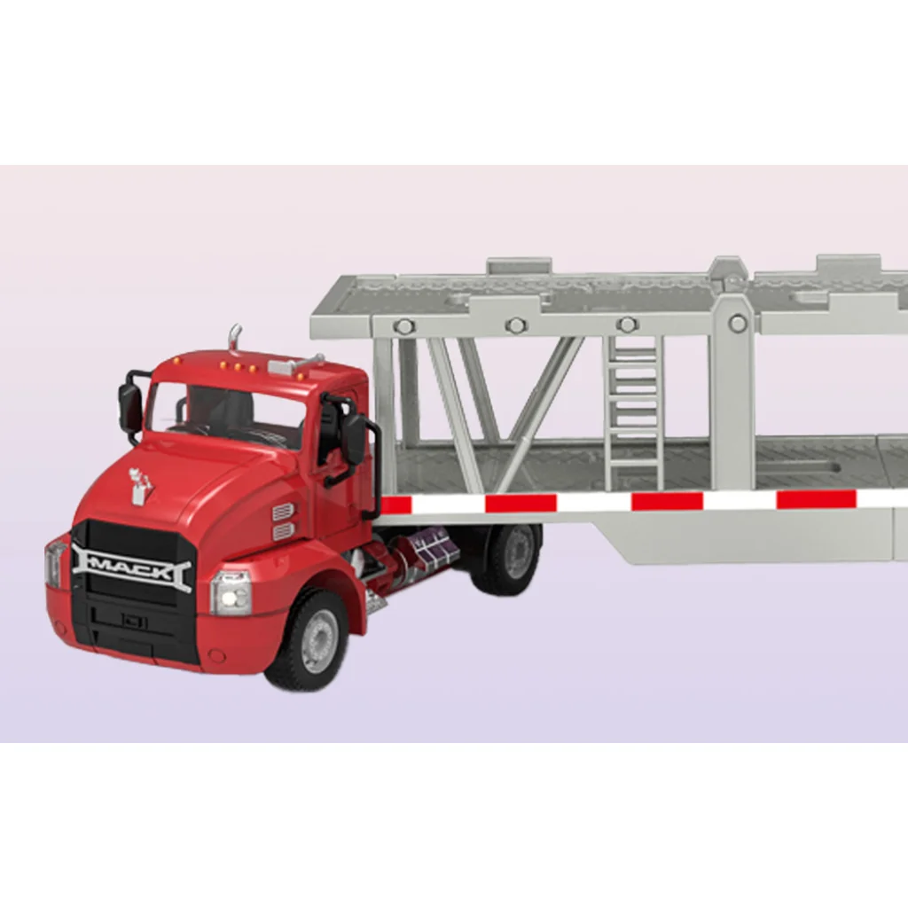 A teherautó minden részlete a maximális szórakozást szolgálja. A felemelhető szállítókerettel és hátsó emelővel teljes mértékben szimulálhatod a járművek rakodási és kirakodási folyamatát. Csak nyomd meg a megfelelő gombot a távirányítón, hogy a járművek biztonságosan lejussanak a platformról! Továbbá, a világító fényszórók és a dudahang még valósághűbbé teszik a játékot.