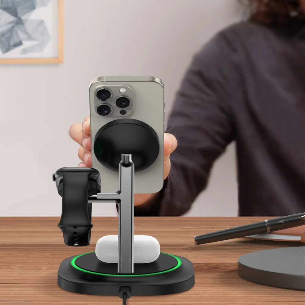Tech-protect Qi15w-a46 3in1 Mágneses Magsafe Vezeték Nélküli Töltő Fekete