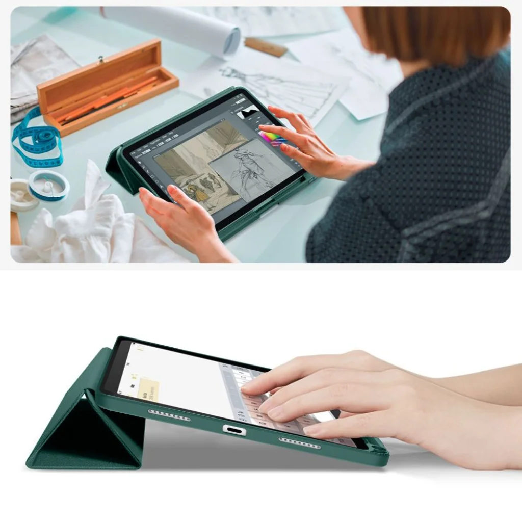 A tok fő funkciója egy speciális tartó az Apple Pencil számára, amely lehetővé teszi, hogy a ceruza biztonságosan tárolva legyen, mindig kézközelben. A tok állványként is használható, lehetővé téve az iPad különböző pozíciókba állítását - filmnézéshez, olvasáshoz vagy kényelmes íráshoz. További funkciója az automatikus alvás és ébresztés, amikor a tok fedelét becsukják vagy kinyitják.