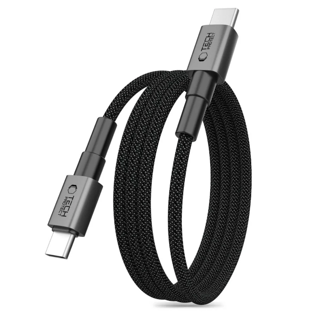 A Tech-Protect UltraBoost DNA kábel egy hatékony és tartós kiegészítő, amelyet gyors töltésre és megbízható adatátvitelre terveztek. USB-C – USB-C interfésszel rendelkezik és támogatja a Power Delivery szabványt akár 100W teljesítményig, ami villámgyors és biztonságos töltést tesz lehetővé okostelefonok, táblagépek és nagy teljesítményű laptopok számára. A kábel 480 Mbps (60 MB/s) adatátviteli sebességet biztosít, garantálva ezzel a gördülékeny fájlok és multimédiák átvitelét. Magas minőségű TPE-ből és megerősített alumíniumból készült, így kivételes tartóssággal és sérülésállósággal büszkélkedhet. Legnagyobb erénye az innovatív MagTwist technológia, azaz a mágneses öncsévélő konstrukció. A kábel szerkezetébe épített mágnesek biztosítják, hogy a kábel automatikusan egyenletes, rendezett hurkot formáljon. Ennek köszönhetően mindig esztétikusan néz ki, minimális helyet foglal és bármikor használatra kész. Véget vet a kábelgubancolódásnak és a rendetlenségnek – egy pillanat alatt összegömbölyítheted, és egy mozdulattal kibonthatod. Ez a praktikus megoldás ideális munkavégzéshez, utazáshoz és mindennapi használatra. A Tech-Protect UltraBoost DNA MagTwist kábel ötvözi a gyorsaságot, biztonságot és kiemelkedő tartósságot, nélkülözhetetlen kiegészítővé válva a legigényesebb felhasználók számára.