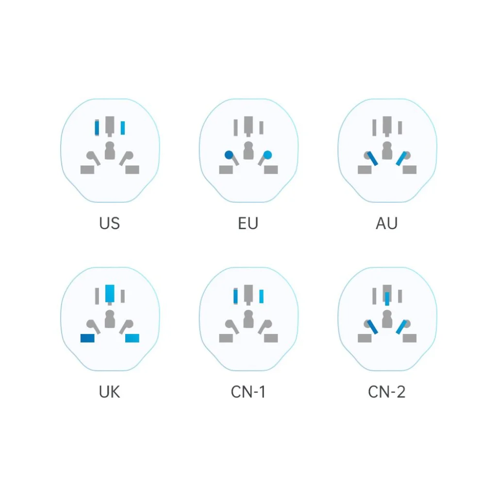 - Széles kompatibilitás (UK, US, EU, CN, AU)