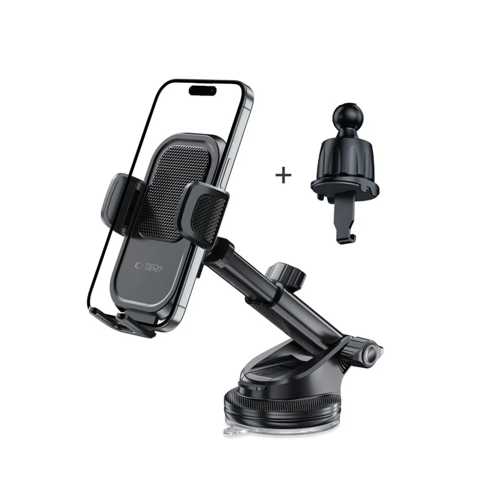 A Tech-Protect V8 innovatív autós tartó, amely sokoldalú rögzítési lehetőségeket kínál - a műszerfalra, szélvédőre vagy a szellőzőrácsra. Erős szorító mechanizmussal van felszerelve, amely szilikon csúszásgátló betétekkel biztonságosan tartja az 53 és 96 mm közötti szélességű eszközöket. A tartót a kényelmes, egykezes kezelhetőség jellemzi a rugós mechanizmussal, míg a teleszkópos kar és a 360°-ban forgó fej optimális telefontartást biztosít. A rögzítés és eltávolítás intuitív - csak tisztítsa meg a felületet, nyomja le a tapadókorongot, és húzza meg a kart. A szellőzőrácsra történő rögzítéshez használja a mellékelt kampós adaptert. A tapadókorong tapadásának megőrzése érdekében ajánlott az újbóli felszerelés előtt megmosni. Az elegáns, univerzális dizájn bármely jármű belsejébe illeszkedik, egyesítve a funkcionalitást az esztétikával. Az egyszerű rögzítés és eltávolítás, valamint az egykezes kezelhetőség teszi a Tech-Protect V8-at praktikus megoldássá minden járművezető számára.
