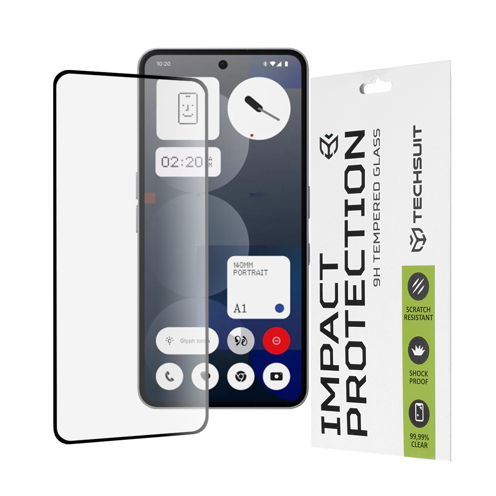 Termék leírás Techsuit - 111D Teljes Borítás / Teljes Ragasztás Üveg - Nothing Phone (3a) Pro - Fekete üvegfólia