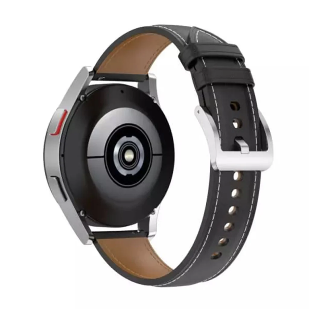 - Elegáns megjelenés: A szíj mélyfekete árnyalata, kontrasztos fehér varrásokkal díszítve, időtlen és modern külsőt kölcsönöz. A részletgazdag kidolgozás prémium érzetet nyújt, és kiemeli okosóráját a tömegből.