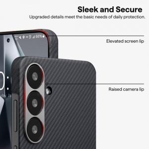 A "Sleek and Secure" kialakítás alapvető napi védelmet nyújt a részletekre kiterjedően. A tok okosan megemelt szélekkel rendelkezik, melyek védik a kijelzőt és a kamera lencséit a karcolásoktól és a sérülésektől, amikor a telefont sík felületre helyezi. Az ütéselnyelő tulajdonságok hozzájárulnak a telefon élettartamának meghosszabbításához, az "all-around protection" elvét követve.