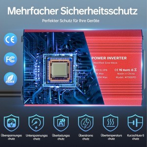 - Túlterhelés-védelem: Biztosítja, hogy az inverter ne károsodjon, ha a csatlakoztatott eszközök túllépik a maximális teljesítményt.