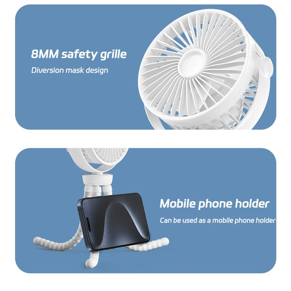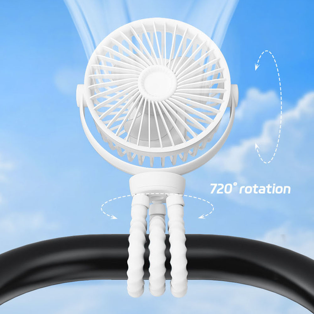 Termék leírás Techsuit - Babakocsi Ventilátor (VP1) - Hordozható, Négysebességes, 360°-ban Hajlítható Tripod Csiptető, 4000mAh - Fekete